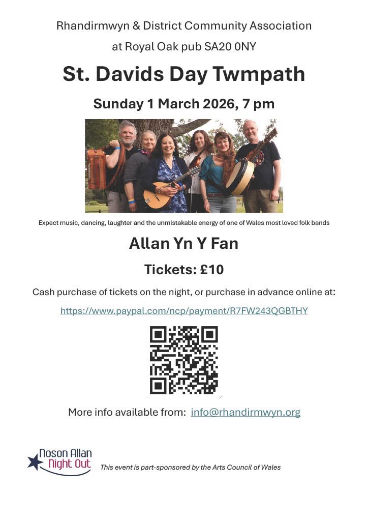 | 01 March 2026 | *Public Twmpath, Royal Oak Pub, Rhandirmwyn, Llandovery more... |